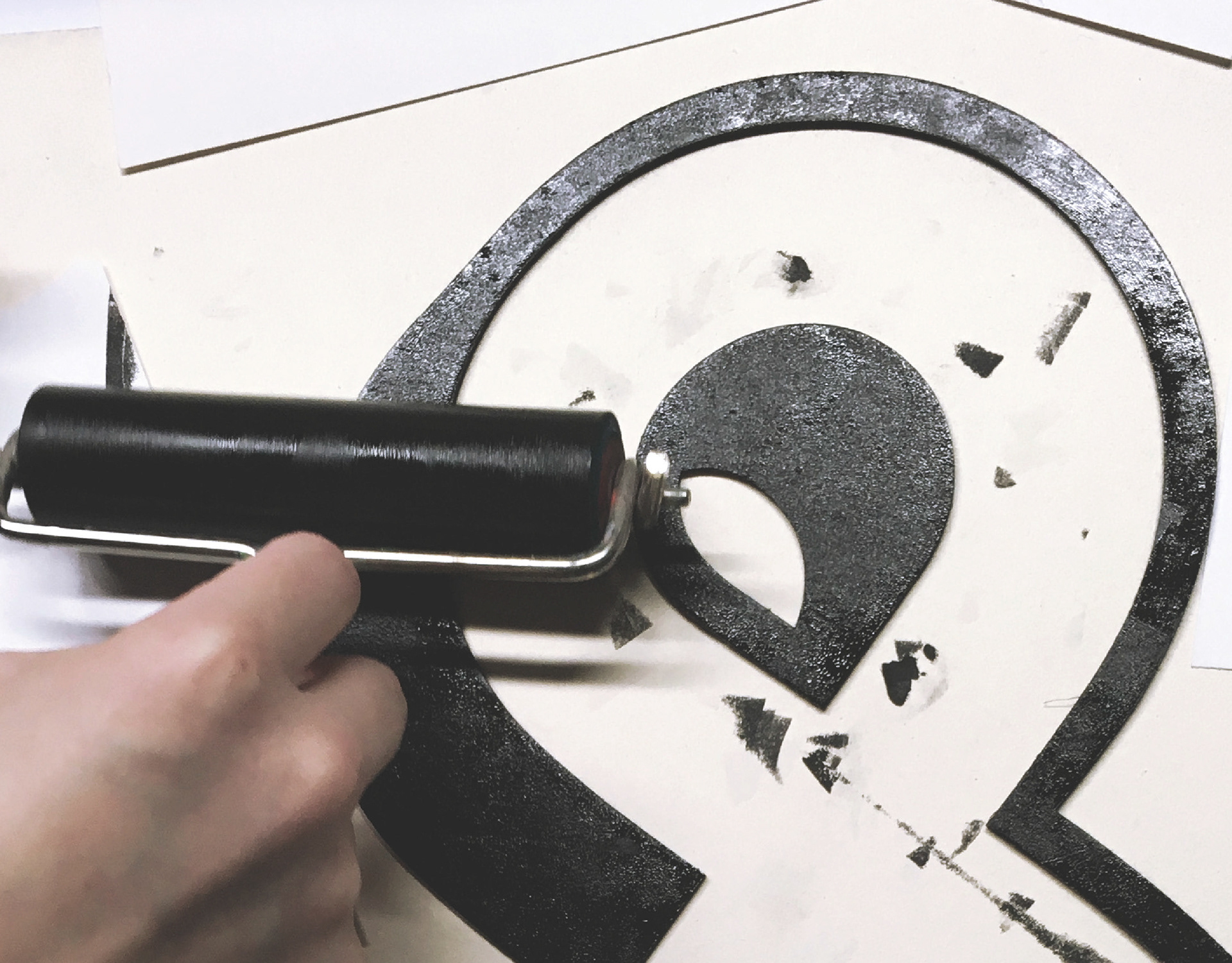 Each letter was cut out of a thin layer of transparent Vivak using a Lasercutter. Afterwards we glued the single letters onto a fixated piece of paper to create our printing template. After setting the ideal strength of the printing cylinder we produced 10 individual Posters.